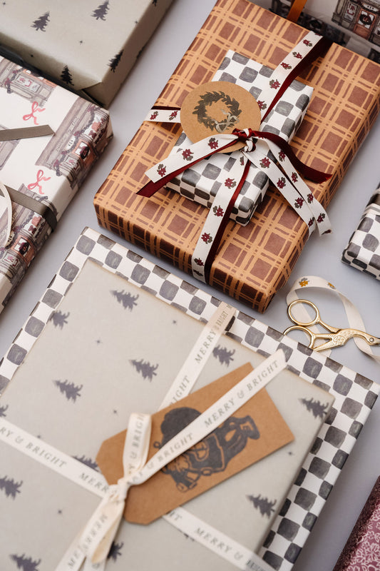 'Kraft Stripe' Gift Bags with Ribbon -- Set of 6