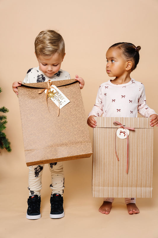 'Kraft Stripe' Gift Bags with Ribbon -- Set of 6